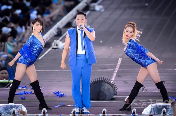 가수 싸이가 3일 서울 잠실 보조경기장에서 열린 ‘싸이 흠뻑쇼 SUMMER SWAG 2018’에서 열정적인 무대를 펼치고 있다.