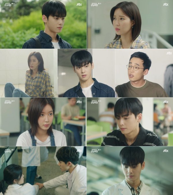 지난 3일 방송된 JTBC 금토드라마 ‘내 아이디는 강남미인’(극본 최수영, 연출 최성범)에서 도경석(차은우)은 개나리 선배 김찬우(오희준)의 괴롭힘으로부터 강미래(임수향)를 구했다. 개강 전부터 몇 번이나 반복되는 ‘강미래 흑기사 도경석’에 화학과 동기들이 두 사람의 관계에 의문을 내비치는 와중, 현수아(조우리)는 이들이 중학교 동창 사이라고 밝혔다.