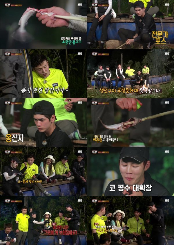 한편, 이날 워너원의 하성운은 병만족장의 훌륭한 조수 역할은 물론, 불 피우기를 한번에 성공에 ‘리틀 김병만’으로 등극했다. 옹성우 역시 땀을 뻘뻘 흘리면서도 진지한 모습으로 새우구이와 생선구이를 완성해 ‘구이 장인’으로 인정받았다. 또한 사바에서만 볼 수 있는 ‘코주부원숭이’ 가족들과도 대화(?)를 나누는 등 훈훈한 모습을 보여주었다.
