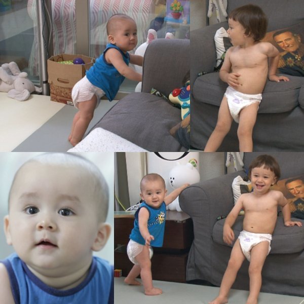 이날 아침 윌리엄-벤틀리 형제는 활기찬 아침을 맞이했다. 샘 아빠와 윌리엄이 숨바꼭질 놀이를 하며 즐거운 시간을 보낸 것. 신나게 놀던 샘-윌리엄 부자는 벤틀리를 보고 놀라움을 감추지 못했다고. 바로 벤틀리가 벌떡 일어나는 모습을 보였기 때문이다.