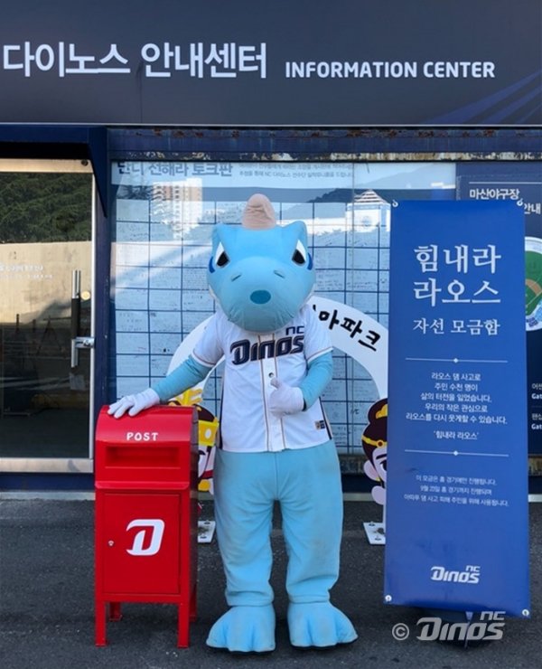 ‘힘내라 라오스’ 모금함은 창원 마산야구장 안내센터 앞에 설치한다. 7일부터 9월 23일까지 NC 홈경기가 열리는 날이면 언제나 모금에 참여할 수 있다.