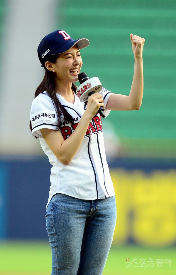 경기 전 미스코리아 美 박채원이 시구에 앞서 응원을 하고 있다.