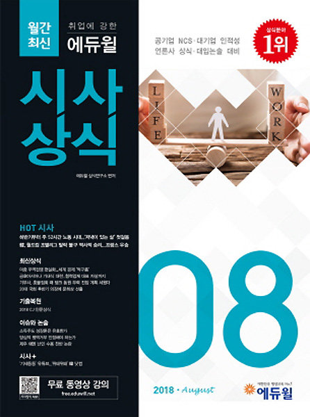 ‘에듀윌 시사상식’의 경우 가장 뜨거운 이슈만을 다루고 있다. 이번 8월호에서는 HOT 시사 ‘주 52시간 노동 시대, 저녁이 있는 삶 첫걸음’을 비롯해 ‘금호아시아나 기내식 대란’ 등 경제 산업 분야 등이 수록됐다. 이 외에도 정치 행정 분야·경제 산업·사회 환경·국제 외교 등 다양한 이슈가 담겨 있다.