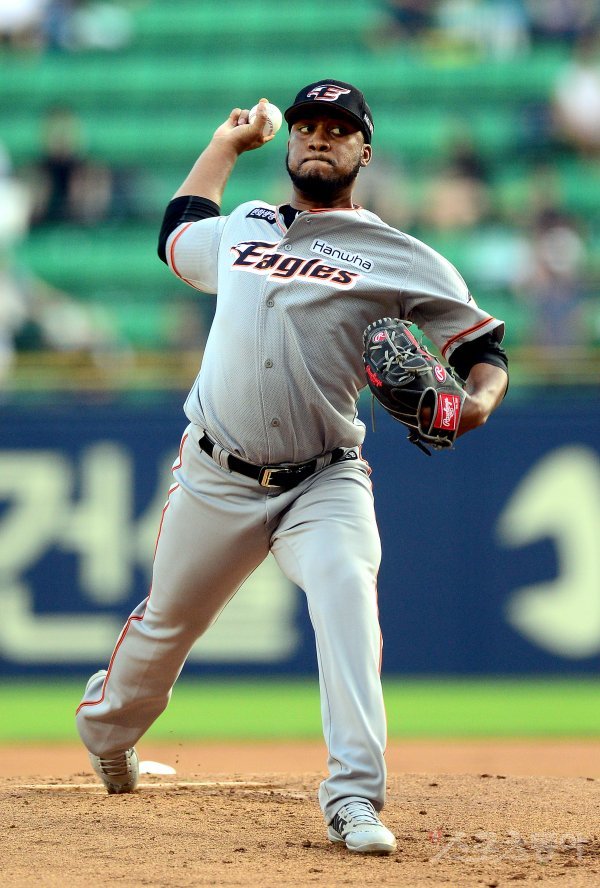 선발 투수로 등판한 한화 샘슨이 역투하고 있다.