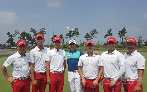 이들이 뜻 깊은 시간을 보낸 7일 인천 서구 베어즈베스트 골프클럽. 태극마크를 품은 장승보(22)~최호영(21)~오승택(20)~김동민(20)은 아침 일찍부터 클럽을 손에 쥐고 필드로 향했다. 이들 곁엔 김경태가 함께 했다. 아시안게임 개막을 앞둔 후배들의 원포인트 레슨 요청에 선배가 흔쾌히 응한 덕분이었다. 김경태는 GS칼텍스 매경오픈을 앞둔 3월에도 후배들과 필드를 밟았는데, 아시안게임 최종엔트리가 확정된 뒤 한 차례 더 만남을 가진 것이다.