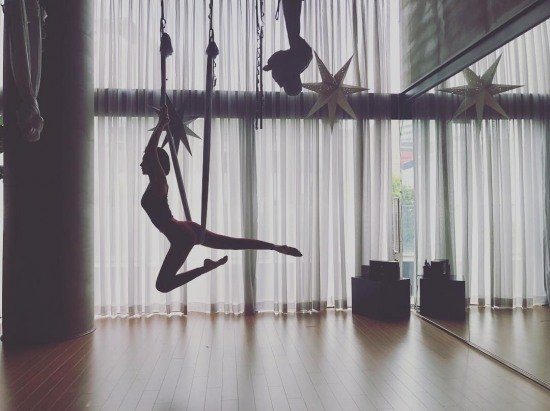 고준희는 8일 자신의 인스타그램에 운동을 하는 자신의 모습을 올렸다. 사진 속 고준희는 플라잉 요가를 하고 있다.