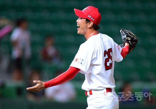 ‘롤모델의 책임감’ SK 와이번스 김광현은 어릴 적 LG 트윈스 좌완투수 이상훈을 롤모델로 삼으며 야구선수로의 꿈을 키웠다. 누군가를 바라보며 공을 던진 그가 이제는 또 다른 누군가 롤모델이 되어 활약하고 있다. 김광현은 “책임감”을 강조하며 ‘에이스’로서의 숙명에 대해 설명했다. 사진은 팀 동료의 호수비에 환호하고 있는 김광현. 스포츠동아DB