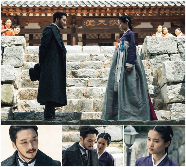 이와 관련해 11일 방송될 11회분에서는 김태리와 변요한이 학당에서 갑작스런 만남을 갖는 모습이 펼쳐져 궁금증을 자극하고 있다. 극중 희성이 여자들만 다니는 애신의 학당을 찾아간 장면. 애신은 자신이 거사에 나갈 때 변복하는 양복과 똑같은 양복을 입은 희성의 방문에 불편해하고, 희성은 언제나처럼 해맑은 미소를 지어 보인다.