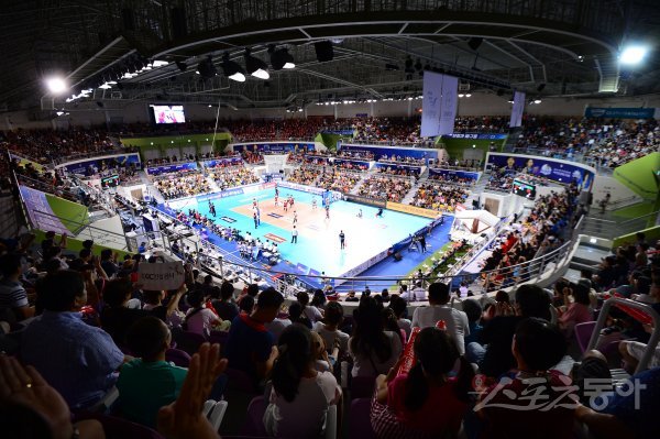 KGC 인삼공사와 GS칼텍스의 결승전 경기에서 많은 배구팬들이 경기장을 찾아 응원을 펼치고 있다.