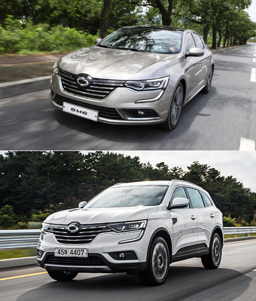 르노삼성의 중형 세단 SM6(위쪽)는 유럽 감성의 차별화된 디자인과 첨단 안전 사양으로, 중형 SUV QM6 가솔린 모델은 세단 수준의 정숙성과 2480만원부터 시작하는 합리적 가격으로 꾸준한 사랑을 받고 있다. 사진제공|르노삼성