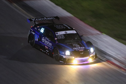 장현진이 11일 인제 스피디움에서 나이트 레이스로 열린 캐딜락 6000 클래스 5라운드 결승에서 선두로 질주하고 있다. 사진제공|CJ슈퍼레이스