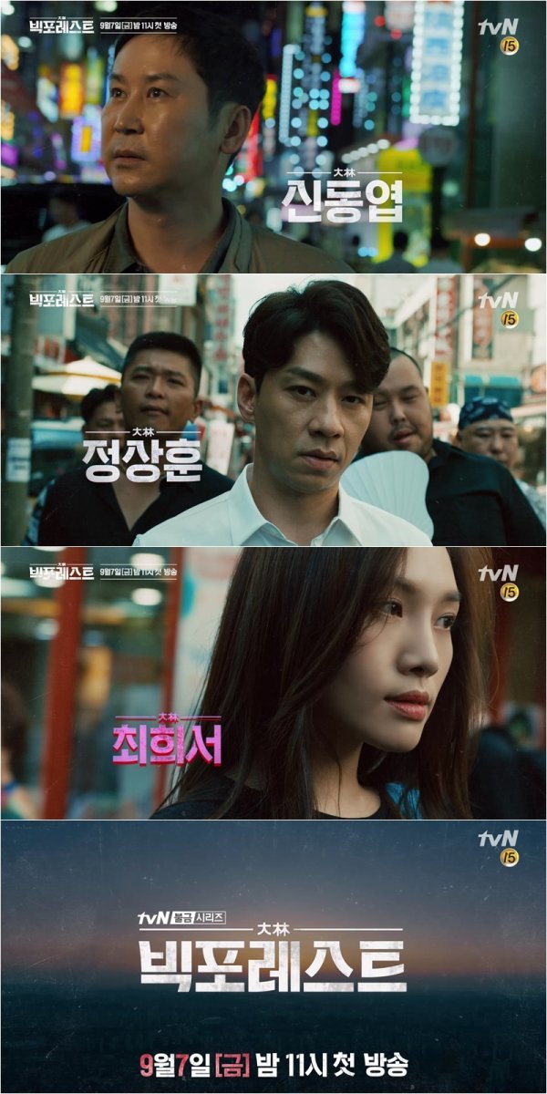 tvN이 새롭게 선보이는 ‘불금시리즈’의 첫 작품 ‘빅 포레스트’는 서울 대림동을 배경으로 폭망한 연예인 신동엽(신동엽 분)과 짠내 폭발 사채업자 정상훈(정상훈 분), 조선족 싱글맘 임청아(최희서 분)가 좌충우돌하며 펼쳐내는 블랙코미디다. 어디로 튈지 모르는 대림 오프로드 생존기가 참신한 웃음으로 금요일 밤을 화끈하게 공략한다. 여기에 ‘슬기로운 감빵생활’의 박수원 PD와 ‘SNL 코리아’ 제작진이 의기투합해 기대를 뜨겁게 달군다.