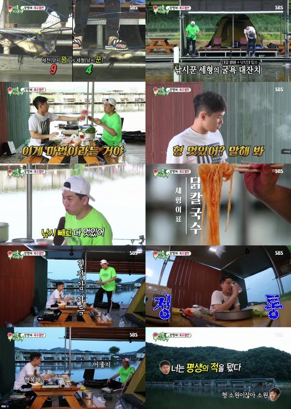 특히, 어릴적 체력이 딸려 동생 앞에서 코피가 났던 트라우마를 떠올리며 양세형은 “평생 난 너를 이길 거야”라고 다짐을 하기도 했다. 이런 가운데 양세찬은 낚시 대결 승자의 소원으로 ‘물따귀’를 말하고, 양세형은 얼굴에 정통으로 떡밥 내음이 가득한 물따귀를 받았다. 이후 양세형은 “넌 평생의 적을 뒀다”라고 엄포를 놓아 평생 끝나지 않을 형제의 난을 예고해 웃음을 안겨주었다.