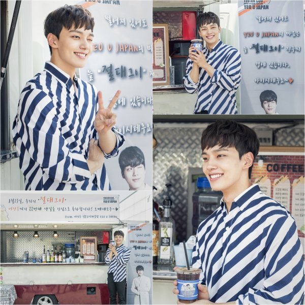커피차에는 '8월13일, 우리의 '절대그이' 여진구씨의 22번째 생일을 진심으로 축하합니다’라는 애정 어린 메시지가 적혀있다. 윙크를 날리는 여진구의 사진과 함께 '떨어져 있어도 여유 재팬의 마음은 늘 '절대그이' 진구씨 곁에 있습니다. 사랑해요’라는 글귀가 시선을 사로잡는다.