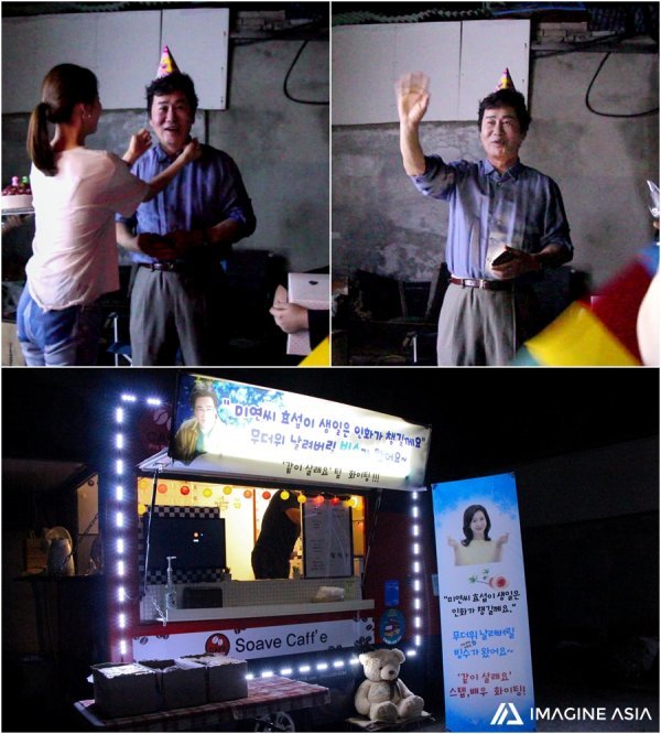 소속사 이매진아시아를 통해 공개된 사진은 유동근 배우의 깜짝 생일 파티 현장이다. 전인화는 “미연씨 효섭이 생일은 인화가 챙길게요. 무더위 날려버릴 빙수가 왔어요~ ‘같이 살래요’ 스태프, 배우 파이팅!”라는 센스 있는 문구로 보는 이들의 미소를 절로 자아내고 있다.