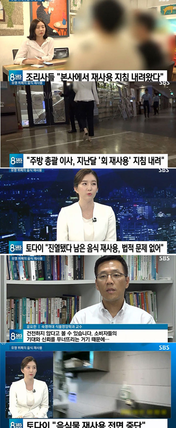 토다이는 “12일 방송된 SBS 뉴스 ‘음식 재사용 법적 문제 없다? 소비자 신뢰 문제’ 제하의 기사에 대해 소비자 여러분에게 안내의 말을 전한다. 우리 토다이에서는 SBS 뉴스에 보도된 내용 중, 18년 7월 5일부터 지난 8월 9일까지 평촌점 뷔페 라인에 진열됐었으나, 소비되지 않은 음식의 일부분을 조리하여 다른 음식에 사용한 부분에 대해 잘못을 인정한다”고 밝혔다.