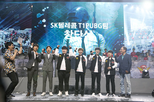 SK텔레콤T1이 12일 경기도 일산 킨텍스에서 ‘배틀그라운드’ 팀 공식 창단식을 가졌다. 창단식엔 최병훈 감독과 최정진 코치를 비롯해 팀 리더 박찬혁, 어태커 포지션 김성진, 지원 포지션 정지훈, 저격 포지션 김성민 등 4명의 영입 선수들이 첫선을 보였다.