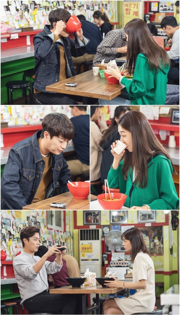 공개된 사진 속 스무 살 시절 두 사람은 매운 것을 먹을 때의 필수품인 과일 음료를 챙겨 짬뽕 먹기 도전에 열중하는 중이다. 특히 그릇째 흡입하고 있는 구대영과 음료수를 들이키는 이지우의 모습이 시선을 강탈하고 있다. 이들은 과연 완뽕에 성공할 수 있을 것인지 호기심을 자극하고 있다.