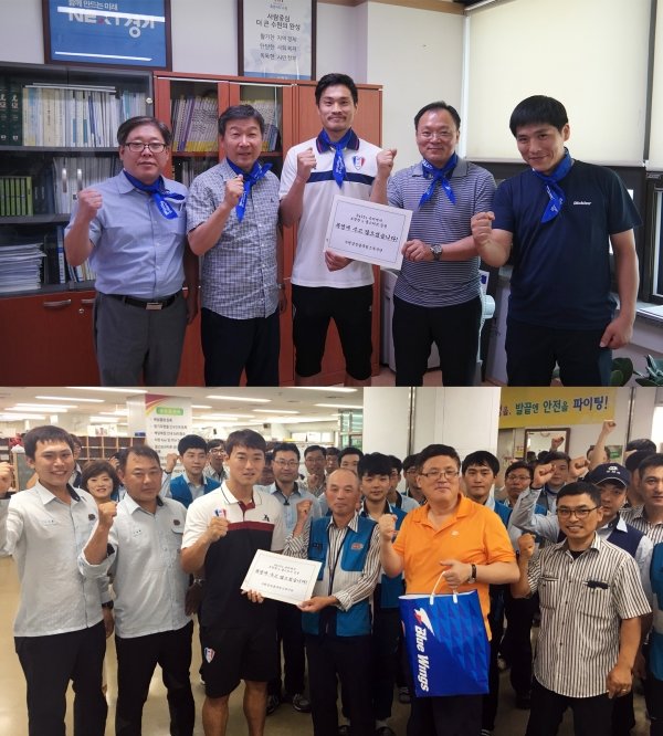 이날 수원시청을 찾아 환경관리원 노조 허창범 사무국장에게 쿨 스카프를 전달한 김은선 주장은 “보이지 않는 곳에서 묵묵히 애써주시는 분들을 위해 자그마한 보탬이 됐으면 좋겠다. 우리 수원삼성은 수원 지역사회의 일원으로서 소임을 다 하겠다”며 “광복절에는 모두들 빅버드를 찾아 수원삼성 승리를 응원해주시길 부탁드린다”고 말했다.