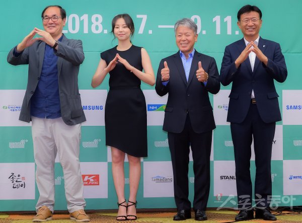 왼쪽부터 배장호 감독, 배우 안소희, 산악인 엄홍길, 이선호 이사장.
