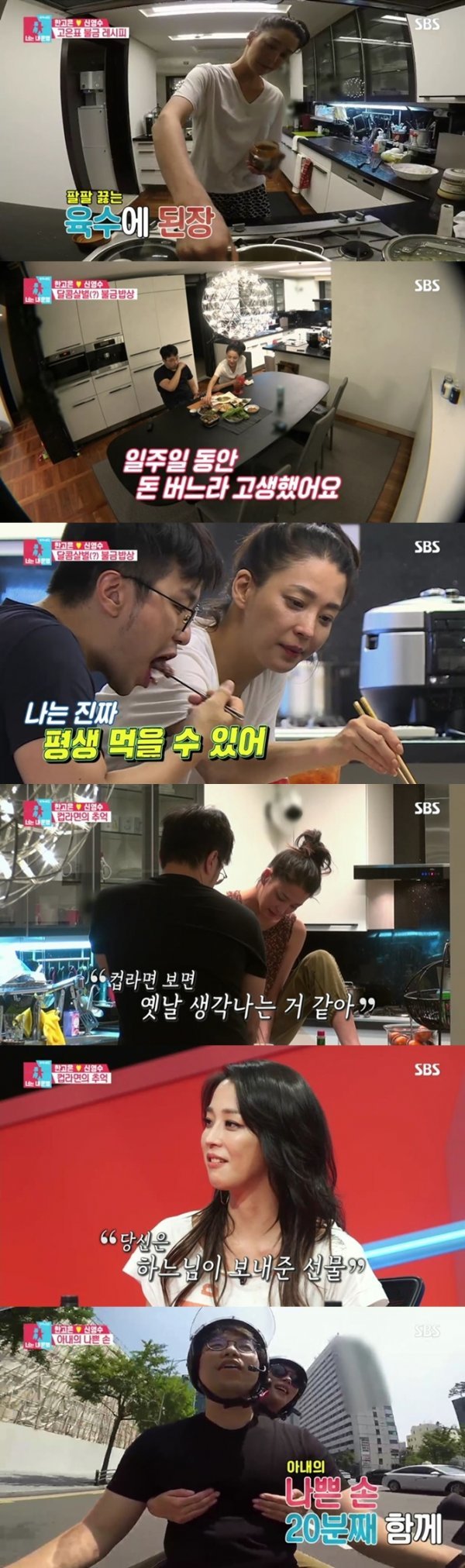 다음 날, 한고은은 컵라면을 먹다가 어린 시절 집안이 어려웠던 사연을 털어놓기도 했다. 미국으로 이민을 떠났던 당시 가장 싼 컵라면에 공짜인 타바스코 소스를 넣어 먹었다는 아내의 말에 신영수는 한고은의 머리를 말없이 ‘쓰담쓰담’하며 그녀를 위로했다.
