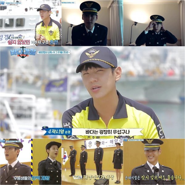 사전교육에서 인명구조와 범인 체포술 등 기본적인 지식을 익히고 준비 마지막 날 정복을 전달 받은 네 사람은 각자의 매력이 담긴 셀프카메라와 해양경찰가를 연습하는 모습으로 친근감을 보여줬다. 곽시양은 187의 큰 키와 다부진 몸매 총명한 눈빛으로 화보의 한 컷 을 그려내며 온갖 슈트가 잘 어울리는 모습으로 훈훈함을 안겼다.
