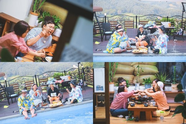 또한 김숙이 이영자에게 물벼락를 맞은 사진이 공개돼 시선을 모은다. 한바탕 물놀이 후, 라면 먹방을 하며 사연을 소개하다가 막장드라마 콩트 열연을 펼친 것. 언니들은 더위 탈출을 위해 서로에게 애정이 듬뿍 담긴 물벼락을 내던지며 시원함을 만끽했다는 후문이다.