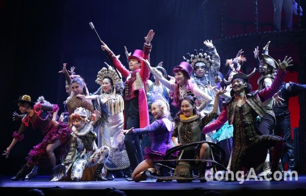 배우 유준상이 16일 오후 서울 충무아트센터에서 열린 뮤지컬 ‘바넘’ 프레스콜에 참석해 하이라이트 시연을 하고 있다.
