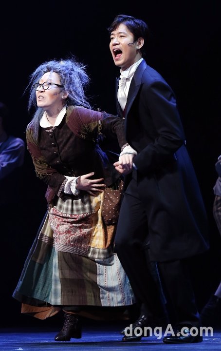 배우 유준상, 김국희가 16일 오후 서울 충무아트센터에서 열린 뮤지컬 ‘바넘’ 프레스콜에 참석해 하이라이트 시연을 하고 있다.