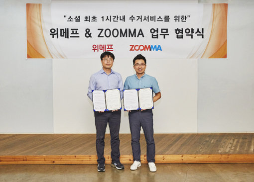 위메프는 물류 스타트업 줌마와 1시간 이내 반품 서비스 ‘홈픽’ 도입을 위한 양해각서(MOU)를 체결했다.