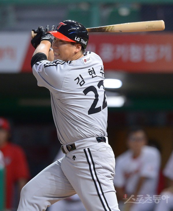3회초 2사 2,3루에서 LG 김현수가 2타점 2루타를 치고 있다.