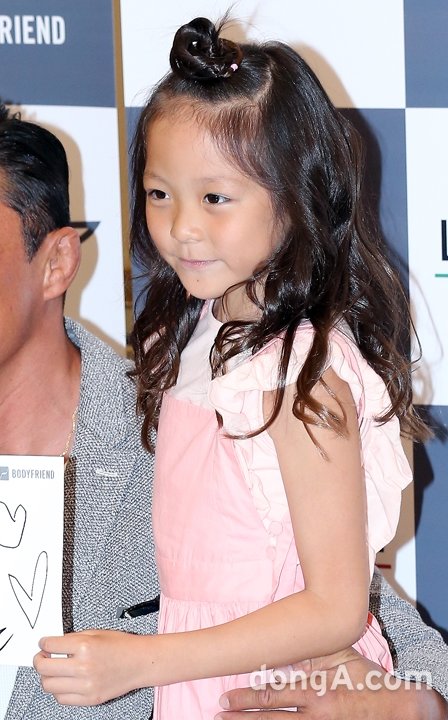 추성훈 추사랑 부녀가 17일 오후 서울 종로구 바디프랜드 매장에서 열린 바디프랜드 광화문 직영전시장 오픈 기념행사에 참석해 포즈를 취하고 있다.