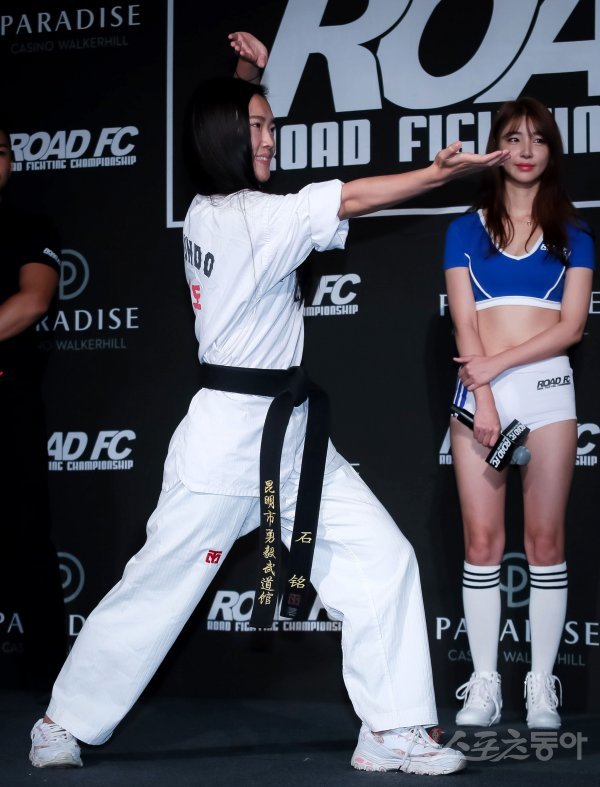 17일 서울 광진구 비스타 워커힐 서울에서 XIAOMI ROAD FC 049 IN PARADISE 공식 계체량 행사가 열렸다. 제 3경기 -52kg 스트로급 스밍이 계체량을 마친 후 기념촬영을 하고 있다 .