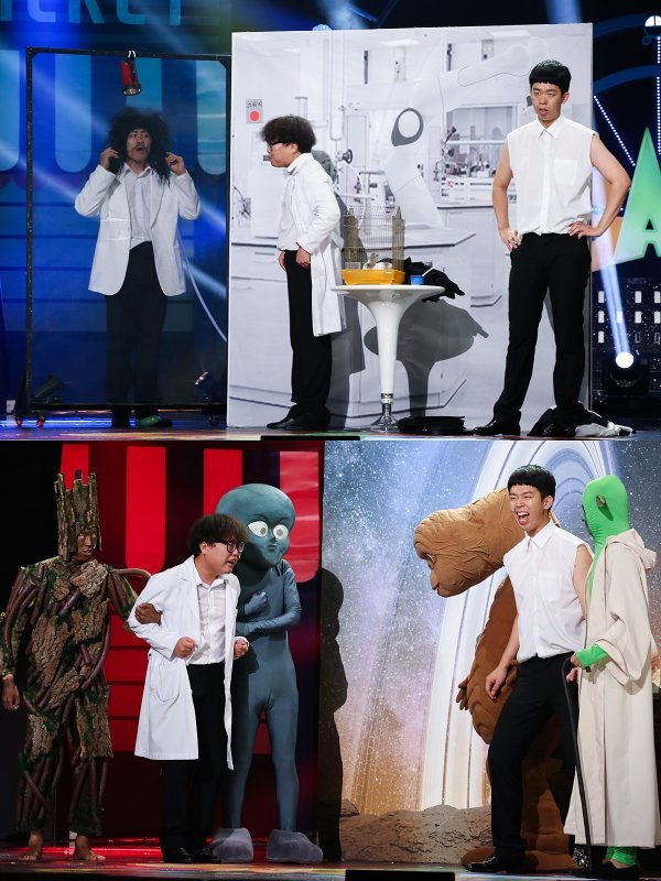그런 가운데 내일(19일) 방송에서 홍현호는 최대의 위기에 놓인다. 자신을 납치하기 위한 외계인 박진호의 치밀한 계략에 제대로 걸려들게 된 것. 녹화 당시 홍현호와 박진호의 SF영화 뺨치는 스펙터클한 첨단 기술이 관객들을 박장대소케 한 것은 물론 긴장감 폭발하는 대치상황에 객석도 함께 숨을 죽였다고.