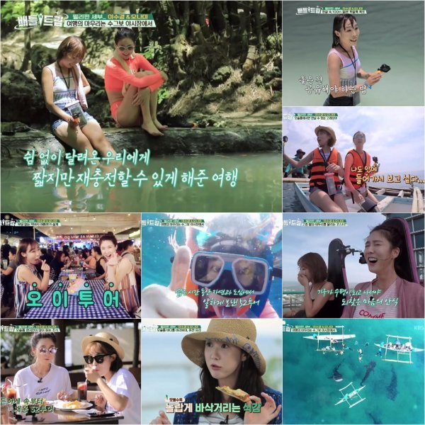 지난 18일 방송된 KBS 2TV ‘배틀트립’에서는 ‘부담없는 막바지 여름휴가’를 주제로 오나미-이수경, 소유진-강래연이 출연해 여행설계 배틀을 예고했다. 선공에 나선 오나미-이수경은 필리핀 세부로 여행을 떠났다. 각자의 성을 조합해 투어명을 ‘52투어’로 정하고, 52시간동안 알차게 필리핀 세부를 즐기기로 해 기대감을 불러 일으켰다.