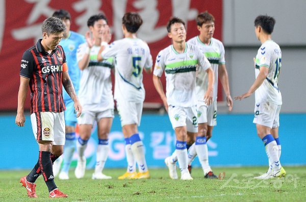 경기 후 서울 고요한이 고개를 떨구고 있다.