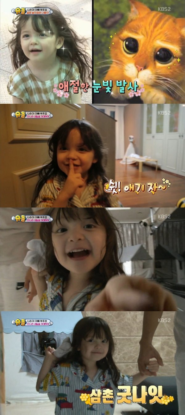 이날 방송에서 가장 높은 시청률을 기록한 장면은 박주호 딸 나은이가 차지했다. ‘슈돌’ 새식구로 합류한 축구선수 박주호와 나은-건후 남매는 첫 등장부터 폭발적 반응을 이끌어내며 시청자들의 관심을 한 몸에 받았다. 뿐만 아니라 나은-건후 남매의 동영상 또한 뜨거운 사랑을 받으며 조회수 1위를 기록하고 있다.