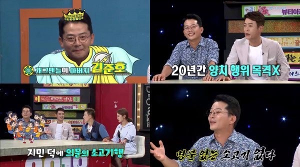 이날 김대희, 변기수, 김지민은 김준호의 더러움에 대해 입을 모아 폭로했다. 이들은 김준호가 한 번도 양치하는 것을 본 적이 없다며 폭로의 포문을 열었다. 김대희는 “김준호 집에서 김준호의 칫솔을 본 적이 없다.”고 말했고, 이에 MC 박나래는 “개그맨 김준현이 김준호에게 물린 적이 있는데 물린 부분이 벌겋게 올라오더라.”며 폭로에 가담했다. 이에 김준호는 ”그럼 양치를 보여주면서 하냐.“며 발끈해 모두에게 웃음을 주었다. 한편 제작진은 김준호가 사전 인터뷰 때 요청한 입냄새 테스트기를 실제로 준비, 상상을 초월하는 신개념 인공지능 테스트기를 본 스튜디오는 웃음바다가 되었다는 후문.