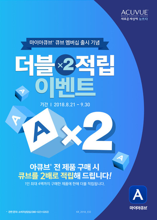 한국존슨앤드존스 비젼은 21일부터 아큐브의 기존 포인트 제도를 새 멤버십 ‘마이아큐브® 큐브’로 바꾸어 운영한다.
