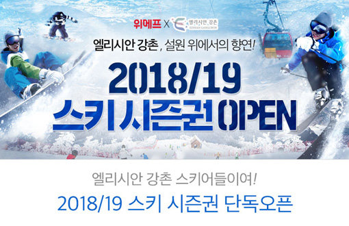 위메프는 엘리시안강촌 얼리버드 시즌권을 31일까지 특가에 단독 판매한다. 웰리힐리파크 시즌권도 22일부터 31일까지 온라인 단독으로 선보인다. 이번 시즌권은 정규 스키시즌 기간 동안 스키와 보드를 즐길 수 있는 리프트 티켓이다. 새벽, 야간 등 영업시간 기준 전 시간대 이용이 가능하다. 엘리시안강촌 요금은 대인권 30만원, 소인권 21만원, 심야는 9만원이다. 웰리힐리파크 시즌권은 대인권 33만원, 여성권 25만원, 소인권 21만원이다. 웰리힐리파크의 경우 시즌권을 구매했던 이력이 있는 고객들은 추가 할인을 받을 수 있다.