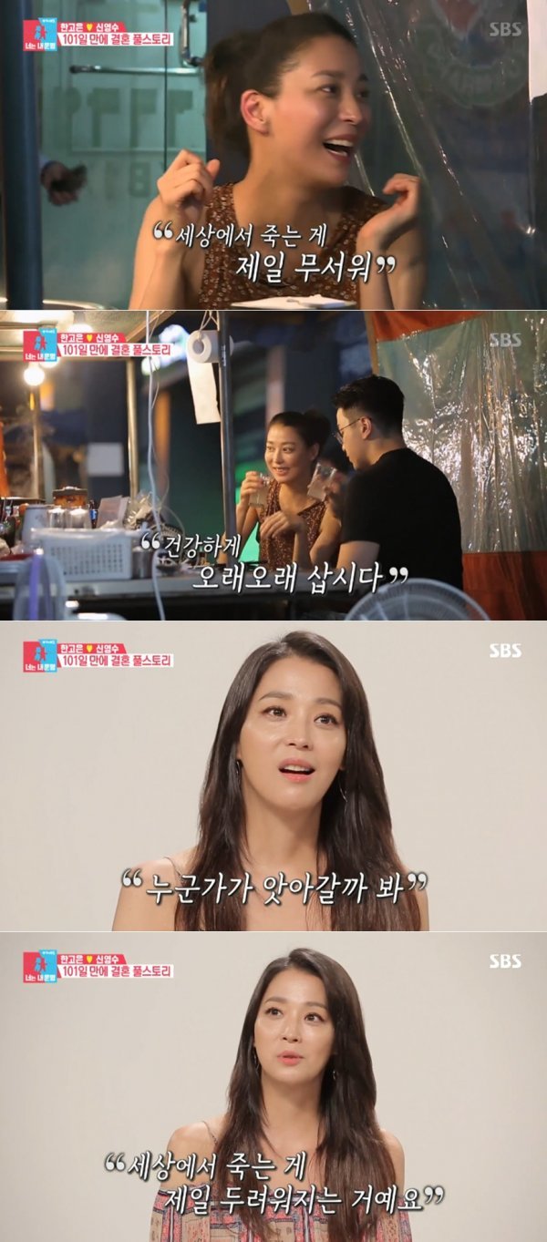 이날 첫 만남부터 결혼까지 풀스토리를 언급한 한고은. 그는 대화 도중 “결혼 전에는 나에게 가장 쉬운 일은 죽는 거였다. 죽는 건 쉬웠다. 사는 게 어렵지. ‘내일은 좀 더 다른 일이 일어날지 몰라’라는 생각으로 하루하루 견뎠다”고 털어놨다. 한고은은 “그런데 지금은 세상에서 죽는 게 제일 무섭다. 지금 죽으면 너무 억울할 것 같다”고 고백했다. 담담히 듣고 있던 신영수 씨는 눈물을 흘리는 한고은을 따뜻하게 안아줬다.
