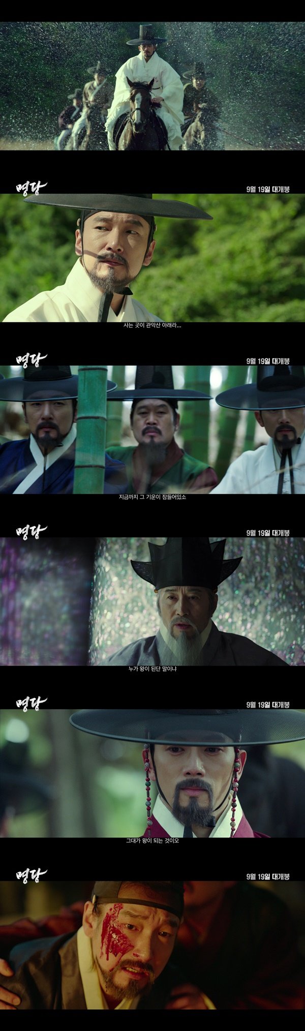 이번에 공개된 \'명당\'의 메인 예고편은 조선 최고의 권력을 가진 세도가 ‘김좌근’(백윤식)이 땅을 이용해 왕권을 가지려는 모습으로 시작해 긴장감을 전한다. 이후 땅의 기운을 읽는 천재 지관 ‘박재상’(조승우)과 운명을 바꾸려는 욕망에 휩싸여 땅을 탐내는 캐릭터들이 대립하는 모습은 흥미를 고조시킨다.