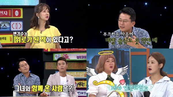 한편 김준호는 자신이 힘들었던 시절 변기수가 큰 위로가 되었다고 밝히며 스튜디오를 훈훈하게 만들었다. 당시 혼자 강화도에 내려가 살았던 김준호는 자신을 찾아온 변기수와의 일화를 털어놓았다. 그는 아무데도 나갈 수 없어 여관방에서 배달음식을 자주 시켜먹었는데 변기수 덕분에 함께 밖으로 나갈 수 있었다고 미담을 공개했다. 하지만 이내 술에 취해 화장실 옆에 쓰러져 있었던 변기수를 버리고 먼저 여관에 들어갔다 고백해 모두를 황당하게 만들었다는 제작진의 전언. 그 이후 변기수는 김준호에게 “괜찮아요 형은 쓰레기니까요.”를 반복하며 말해, 그게 훗날 자신의 유행어가 되었다며 비하인드 스토리를 털어놔 많은 이들을 폭소케 했다.