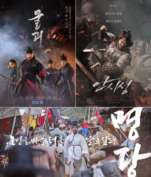 세 작품은 2014년 1700만 관객을 동원하며 역대 최고 흥행 기록을 세운 ‘명량’을 비롯해 ‘해적:바다로 간 산적’, ‘군도:민란의 시대’, ‘사도’ 등 2000년대 들어서 부쩍 흥행세를 유지한 한국영화의 명성을 이어받을 기세다. 사실 최근 2∼3년 사이 사극의 열기는 다소 주춤했던 게 사실. ‘조선명탐정’ 시리즈가 그나마 관객을 끌어 모았지만 퓨전 사극의 분위기가 강하다는 점에서 ‘물괴’와 ‘명당’, ‘안시성’ 등 올해 정통사극 중심의 흐름이 어떻게 스크린에 안착할지가 관전 포인트다.