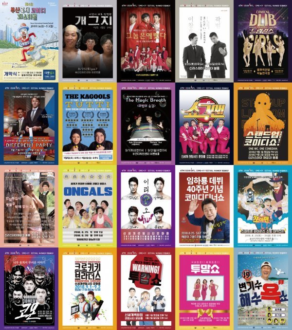 10개국 40개 팀과 함께하는 ‘부코페’는 풍성하고 개성 강한 공연들이 출격, 꿀잼을 안길 예정이다. 매번 개그 취향 저격에 성공하며 큰 인기를 얻고 있는 ‘옹알스’, ‘이리오쇼’, ‘해수욕쇼’와 함께 데뷔 40주년을 맞은 임하룡의 디너쇼 ‘쑥스럽구먼’, 엄마들의 공감 200%를 자랑하는 ‘투맘쇼’, 아이들의 무한한 사랑을 받는 ‘쪼아맨과 멜롱이’와 더불어 ‘개그지’, ‘투깝쇼’, ‘까브라더쑈’, ‘스탠드업 라이브 코미디쇼’, ‘그놈은 예뻤다’, ‘코미디몬스터즈’, ‘드립걸즈’, ‘크로키키 브라더스’, ‘쇼그맨’ 등의 국내 공연이 배꼽사냥에 나선다.