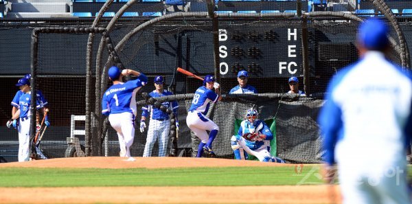 야구대표팀 타자들이 라이브 배팅을 훈련하고 있다.