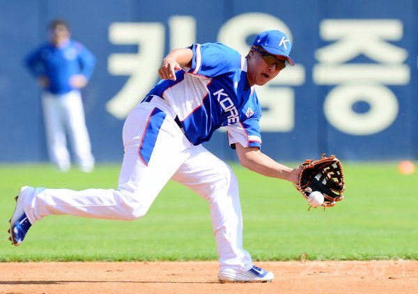 야구대표팀 황재균이 수비를 훈련하고 있다.