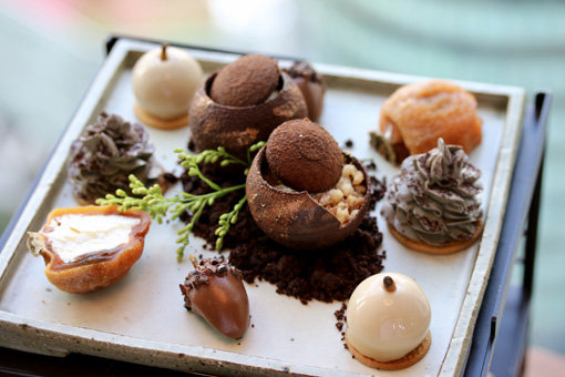 제철 식재료와 장독대 도토리, 솔방울 모양의 각종 디저트로 가을 정취를 표현한 파크하얏트 서울의 ‘폴 인 애프터눈 티’. 사진제공|파크하얏트 서울