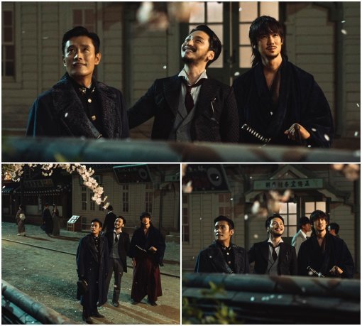 이와 관련 오는 25일(토) 방송될 15회분에서는 이병헌과 유연석, 변요한이 어깨를 나란히 한 채 거리를 걷고 있는 모습이 담긴다. 극중 유진과 동매, 희성이 대화를 나누며 어디론가 향하고 있는 장면. 걷고 있던 세 사람은 동시에 발걸음을 멈추고 한 곳을 바라보고, 은근하게 미소를 짓는다. 고애신(김태리)을 향한 각각의 연정을 가진 세 남자가 함께 걸음을 옮기는 모습이 포착되면서, ‘굴곡진 소용돌이’ 속 세 사람의 운명에 대해 이목이 집중되고 있다.