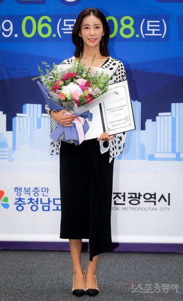 배우 한은정이 24일 서울 강남구 삼성동 코엑스 4층 프라이드랩 회의실에서 열린 ‘2018 충청권 중소벤처기업 박람회’ 홍보대사 위촉식에서 포즈를 취하고 있다.